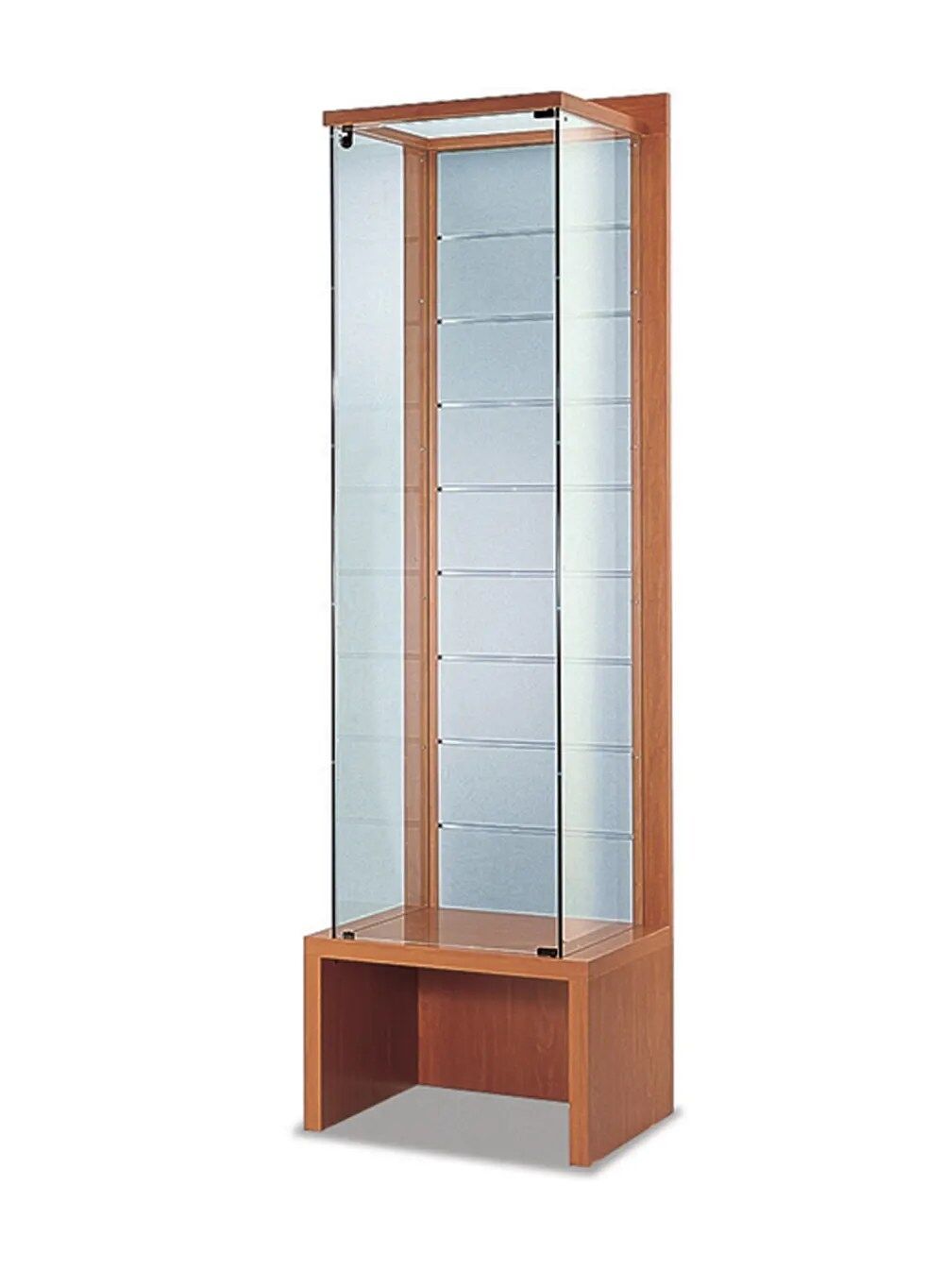 Cette conception permet de créer un impact mémorable auprès de votre clientèle ou de vos visiteurs. La base de la vitrine offre un espace de rangement ouvert, offrant une polyvalence adaptée à vos besoins spécifiques.
